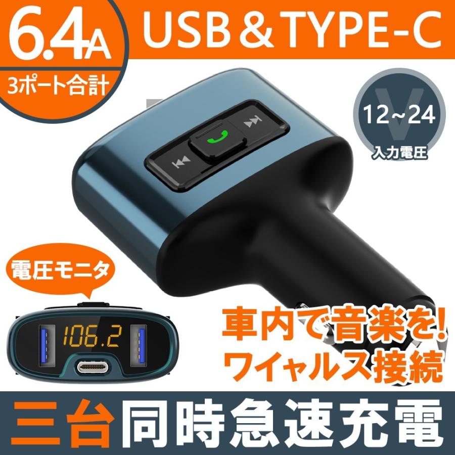 Fmトランスミッター Usb 2ポート 急速充電対応 Bluetooth 5 0 車載用 スピーカー シガーソケット カーチャージャー 12v 24v車 急速充電 3 1a 音楽再生 ハンズフリー 通話 電圧測定 スマートフォン タブレット 多機能 ブルートゥース 無線 営業車 中古車 宅配便のみ